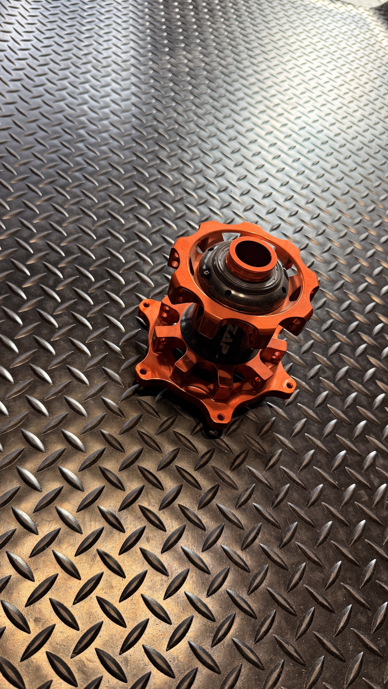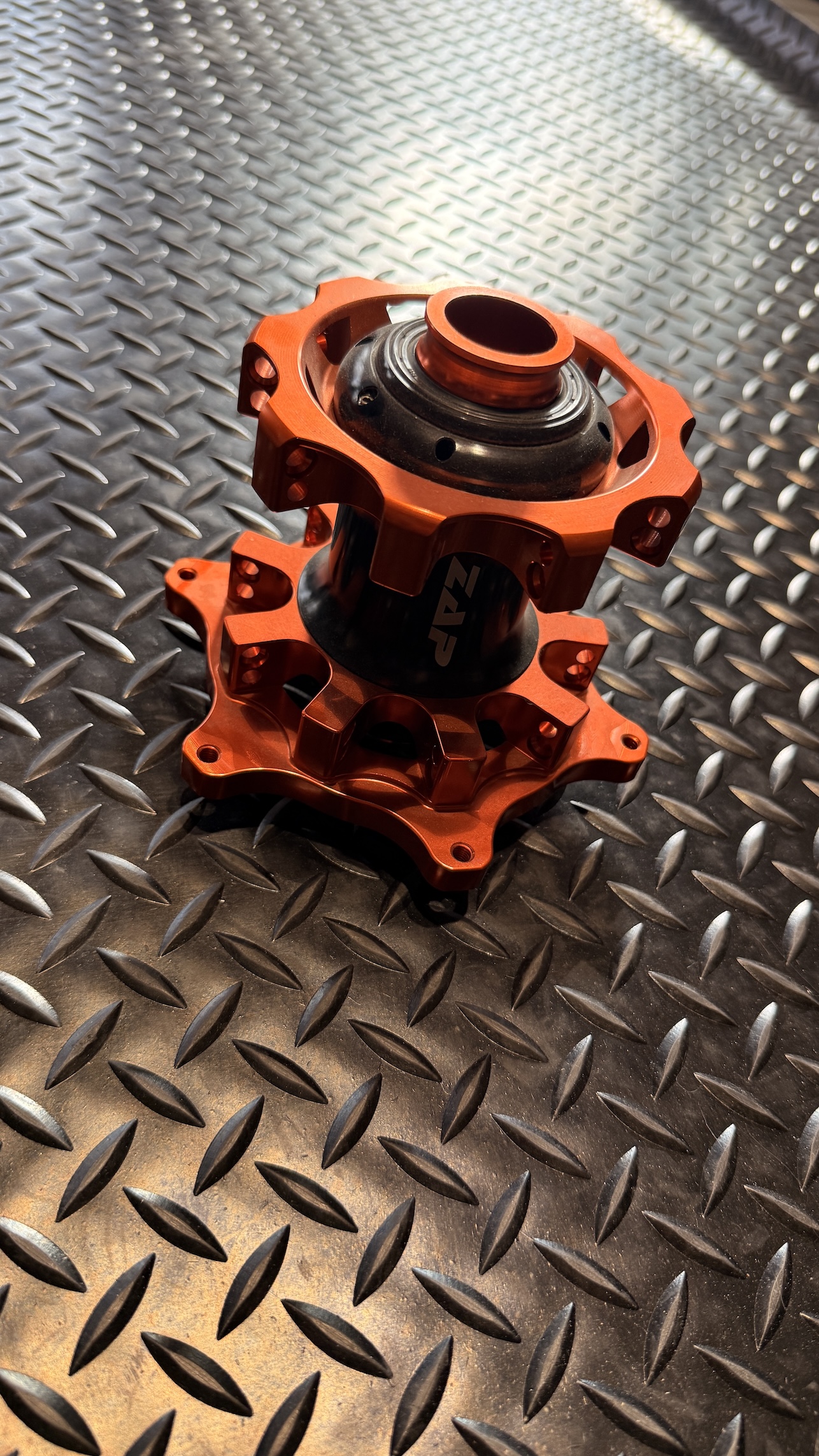 KTM Vorderradnabe in orange mit Ø26 Achse. Ideal für Umbau oder Ersatz.